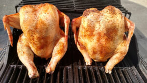 Beer can chicken is an easy (and fun) way to grill chicken. Who doesn’t love a recipe where you’re encouraged to imbibe one of the ingredients before preparing it? The steam from the beer (or soda) keeps the chicken moist and delicious while the skin gets crispy! You can also grill to birds at the same time to save time and get a start on the next day’s dinner—chicken quesadillas, chicken salad, stir fry, or whatever else you choose.